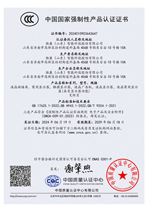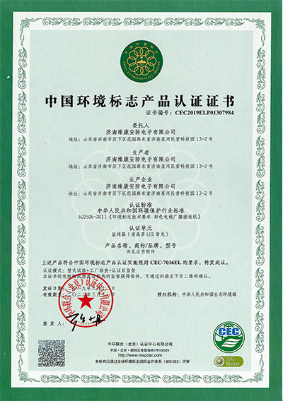 公司通過了CCC認(rèn)證、節(jié)能認(rèn)證、環(huán)境標(biāo)志產(chǎn)品認(rèn)證、公安部安全與警用電子產(chǎn)品質(zhì)量檢測中心檢測報(bào)告(CNAS認(rèn)證) 、ISO9001、14001、18001、CE、CB、FCC、ROHS、抗震防塵等多項(xiàng)資質(zhì)認(rèn)證,并入選《政采節(jié)能產(chǎn)品清單》。